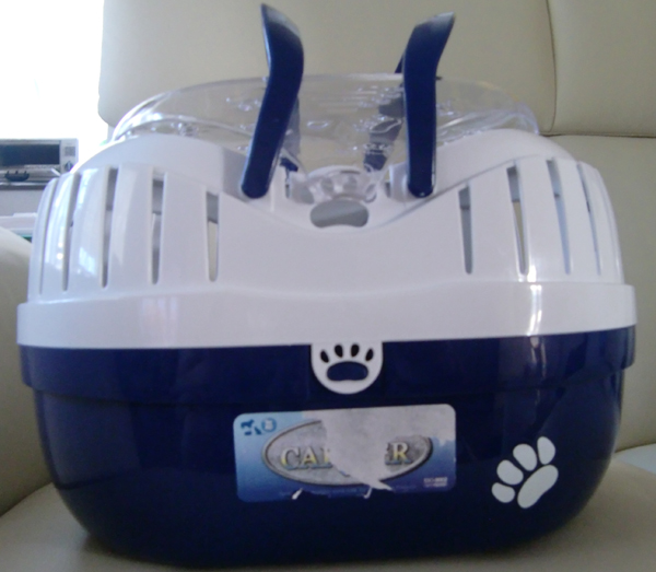 空輸されてきた時のキャリーケースにちぇるしー入れて、車の助手席において出発。