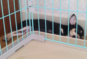 さすがのちぇるしーも病院から帰るとゲージの外の隅っこでぐっすり。