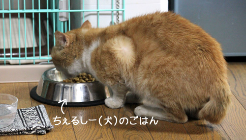 最近、ちぇるしー(犬)のドライドッグフードがお気に入りらしく、帰ってくるなり、直行!